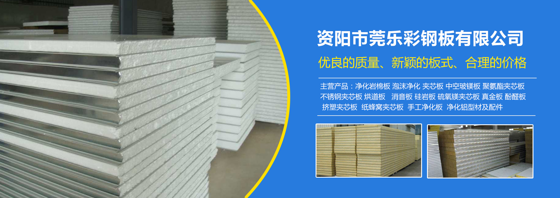 資陽市莞樂彩鋼板有限公司成立于2017年03月08日,位于資陽市樂至縣西郊工業(yè)園,廠區(qū)占地面積2500多平方,擁有多條彩鋼板生產(chǎn)線。交通十分便利,地理位置優(yōu)越。公司從事凈化巖棉板、泡沫凈化夾芯板、中空玻鎂板、聚氨酯夾芯板、不銹鋼夾芯板、烘道板、音板、硅巖板、硫氧鎂夾芯板真金板、酚醛板、擠塑夾芯板、紙蜂窩夾芯板、手工凈化板、凈化鋁型材及生產(chǎn)和銷售的新型建材企業(yè)。擁有一批專業(yè)過硬、作風(fēng)穩(wěn)健的生產(chǎn)技術(shù)人員和經(jīng)營(yíng)管理精英,公司內(nèi)部良好的組織氛圍、優(yōu)良的企業(yè)文化和科學(xué)的經(jīng)營(yíng)管理,使公司成為一家活力的現(xiàn)代化經(jīng)營(yíng)企業(yè)。